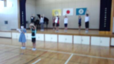 体育朝会が行われました。体育委員の子供たちによるラジオ体操の見本を見ながら、教室で手の動きなどを真似して練習をしました。夏休みに向けてラジオ体操のやり方を覚え、積極的に体を動かし、健康に過ごせるようにしていきましょう。