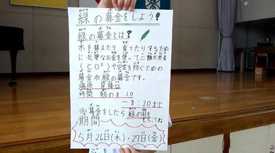 また、児童会より緑の羽根募金についての説明がありました。26日と27日に行います。ご協力よろしくお願いします。