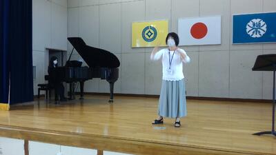 今回の内容は、「歌う時の呼吸の仕方」と「ハミングでの発声練習と市民歌の練習」でした。