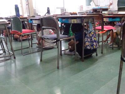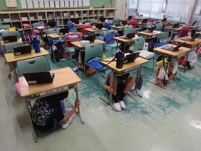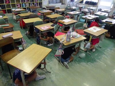 本校では、毎月「シェイクアウト訓練」を実施しているので、子供たちは緊急地震速報が流れると、