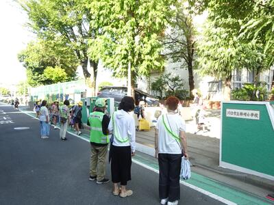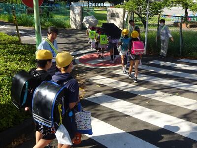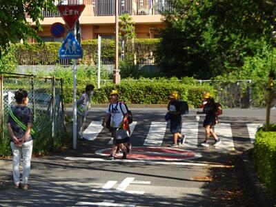 今朝は、地域のボランティア「あいさつ声かけ隊」のみなさんに迎えられ、