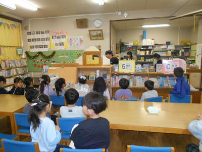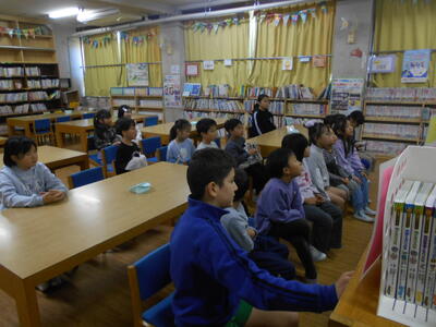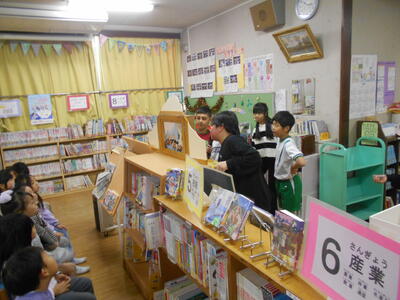 図書委員会の読み聞かせ 投稿: HP担当 (14:20) カテゴリー: 学校行事 今日は休み時間に、5・6年生の図書委員の子供たちが、 紙芝居を使っての読み聞かせをしてくれました。 図書室を訪れたやなぎっ子が、お話に夢中になっていました。