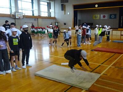 新体力テストウィーク(練習期間) 投稿: HP担当 (20:28) カテゴリー: 学校行事 新体力テストの本番前に、休み時間を利用して、 実施方法や計測方法を確認したり練習したりしています。 今日は、あいにくの雨だったので、体育館種目を1年生と5年生が練習しました。