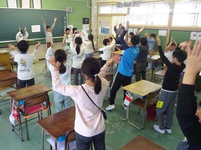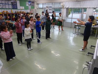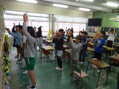 今日の昼休みは、「たてわり班活動」の中で、運動会の応援練習を応援団が中心となって行いました。