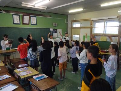 児童会のみなさんを中心に演じた劇を見てもらい、