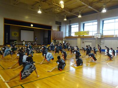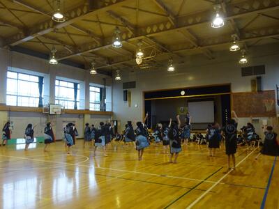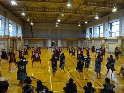午後は6年生が体育館で、運動会練習の仕上げをしていました。