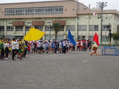 今年の運動会スローガンは「仲間と協力して、本気で楽しもう」です。