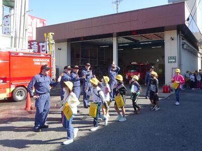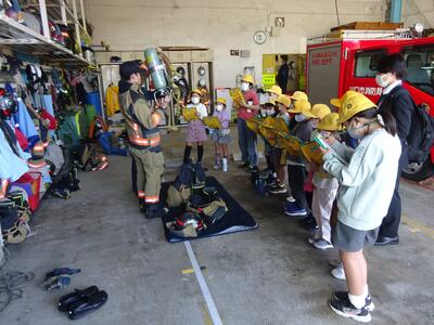 3年生が社会科の学習の一環で、地域にある消防署を見学してきました。