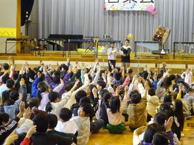音楽の学習の成果を、子供たちがお互いに発表し合い、
