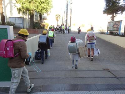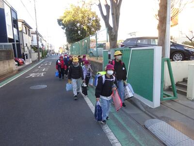 大きな荷物をもって登校するやなぎっ子から、今年も元気なあいさつをしてもらいました。