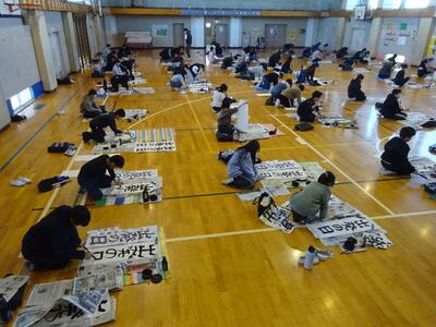 3年生が、講師の先生をお招きして書き初めの練習を行いました。